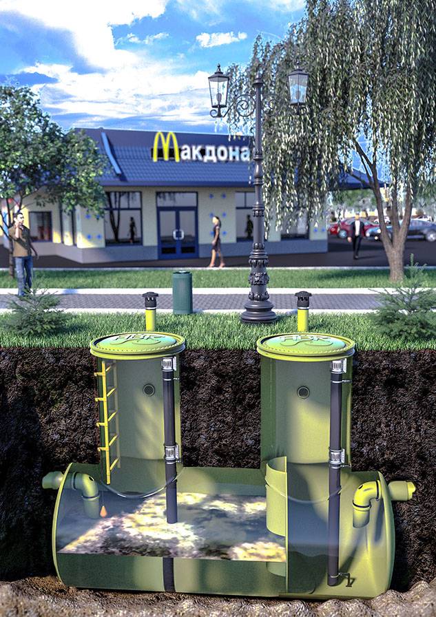 Промышленный тип установки отличается от бытового тем, что имеет более высокую производительность, более крупные габариты, возможность монтажа под землей или в отдельном техническом помещении.